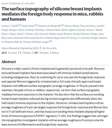 經過《Nature》期刊的發表,是否對於乳房植入物的表面材質更加瞭解了呢?想要進行隆乳手術,擁有公正真實的實驗結果佐證,更能選擇安全合適的植入物,並將莢膜攣縮率降至最低、遠離隆乳後的不良反應,擁有理想中的美麗胸部,增添自信美麗!