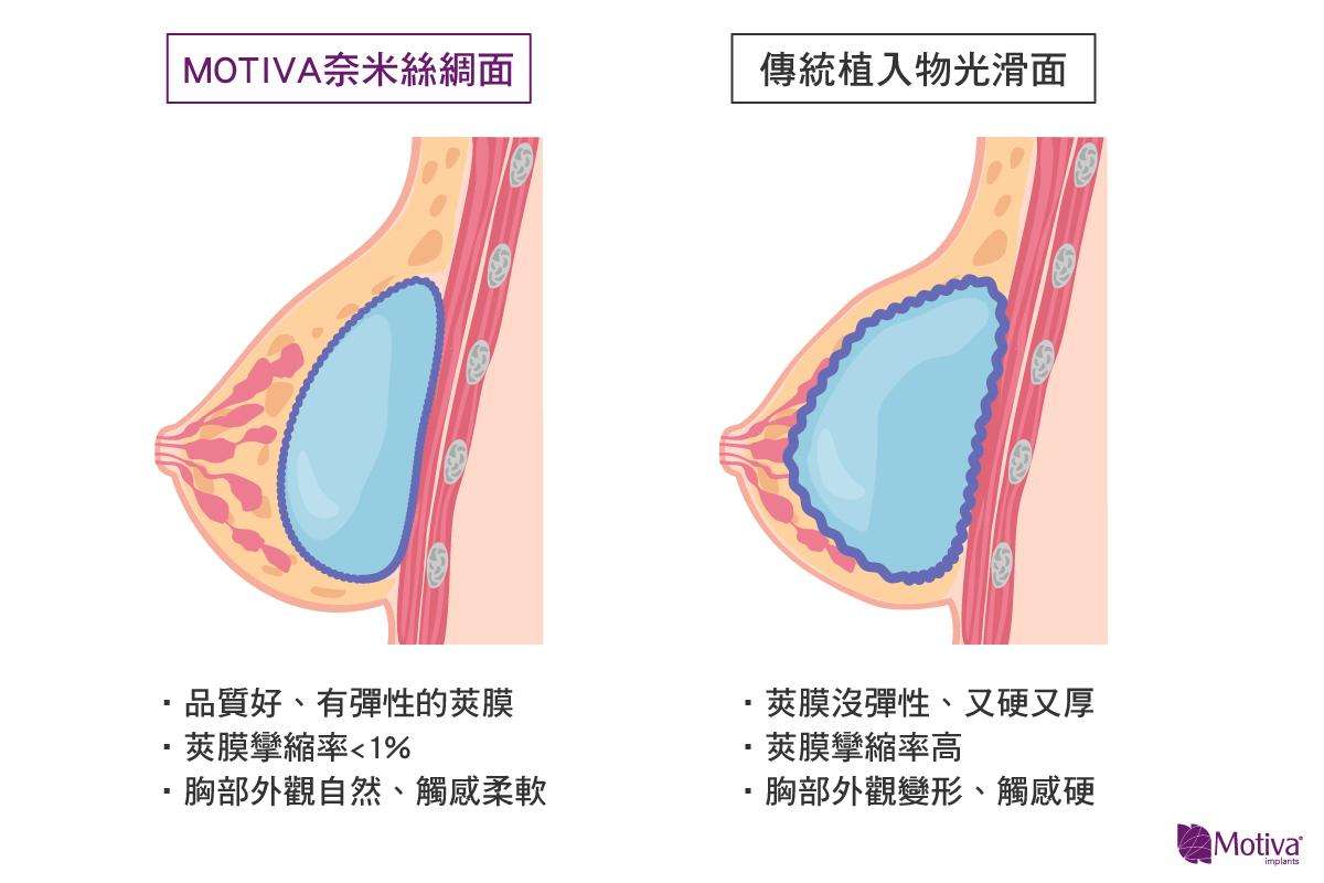 為什麼魔滴奈米絲綢面和傳統植入物光滑面相較之下莢膜攣縮率較低