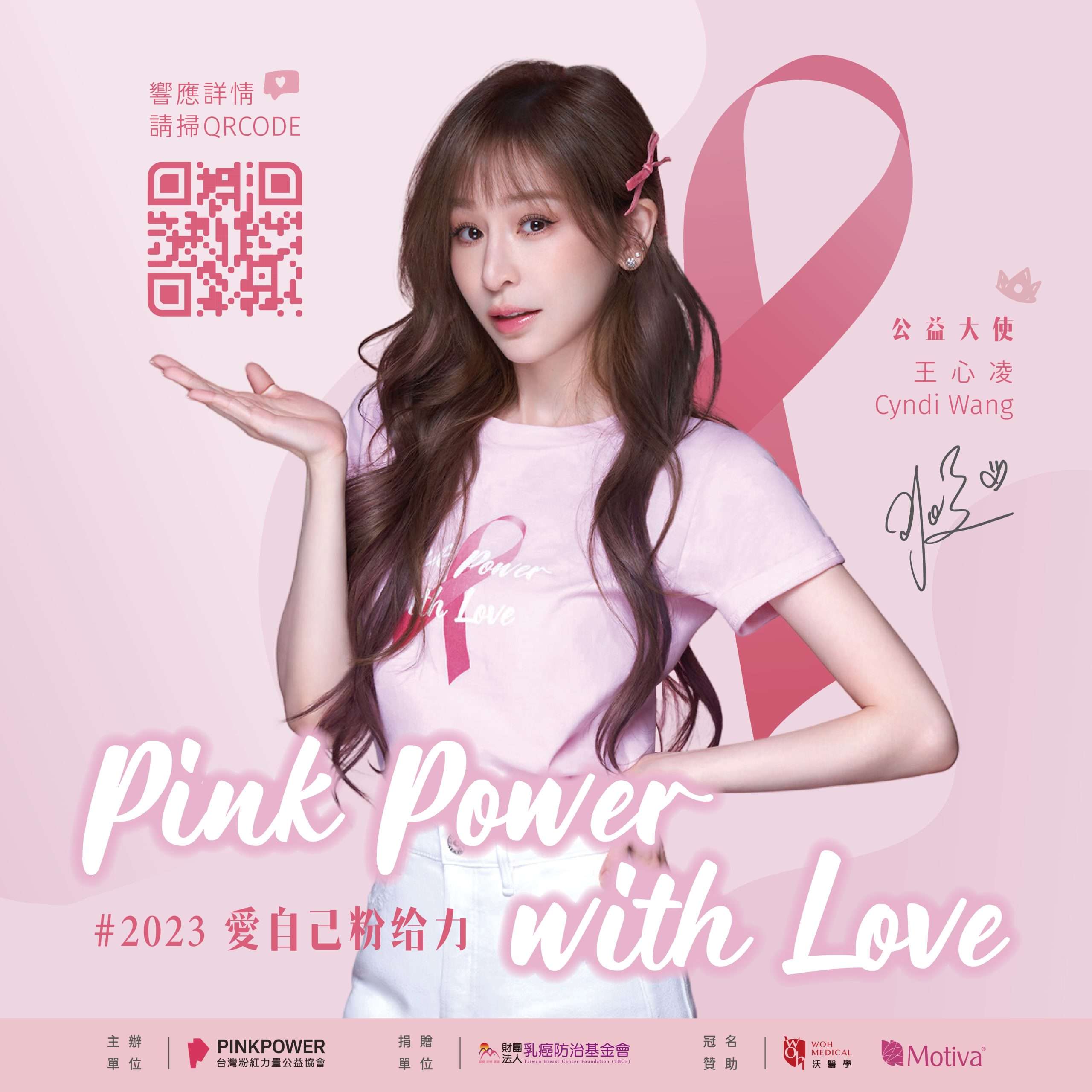 每年10月為全球乳癌防治月,Pink Power 台灣粉紅力量公益協會一直以來對於乳癌防治及乳房重建的相關公益活動盡心盡力,今年更邀請到溫暖甜美且正能量的王心凌擔任2023 Pink Power 公益大使,呼籲女性多關心自己的身體健康,愛自己從健康做起,並期望每位女性都能對於身體健康更加上心,期望有效預防乳癌的發生,當然也為需要進行乳房重建的女性給予幫助,讓乳房重建能幫助女性重拾自信與勇氣!